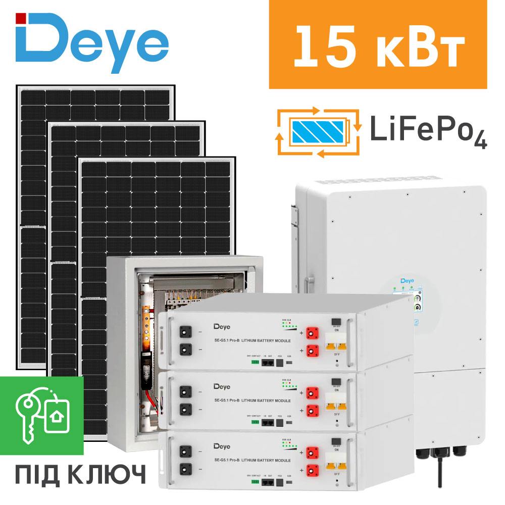 Гібридна сонячна електростанція Deye 15 кВт (під ключ)